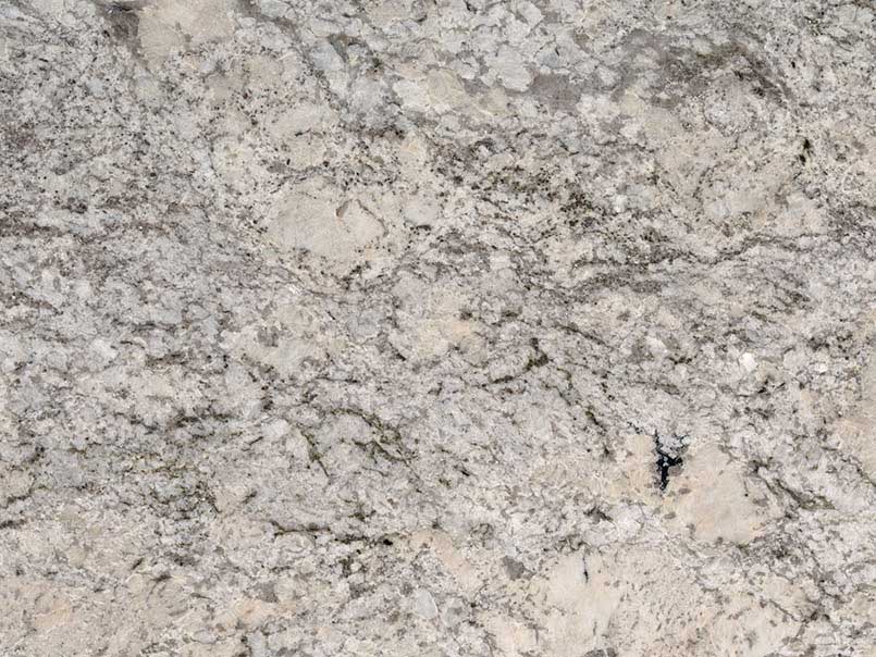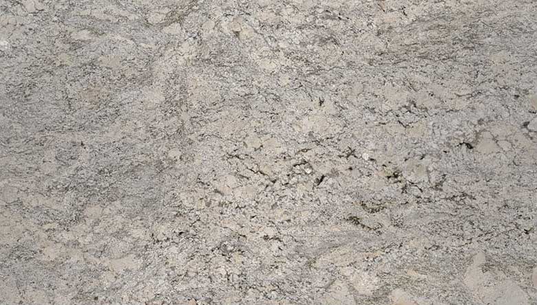 Alpine Valley Granite, from India, featuring subtle patterns of grays and whites against a primarily creamy background.