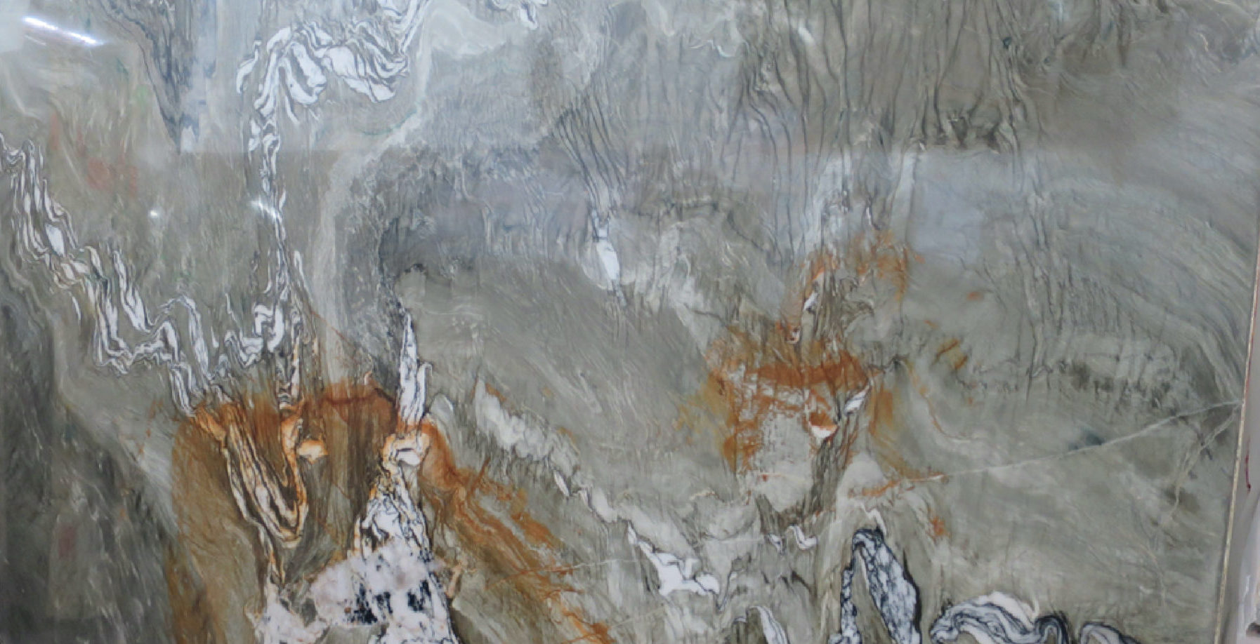 La Tempete Quartzite is a natural stone from Brazil with a gray and green base and a large rustic vein.